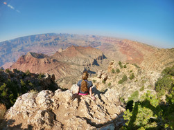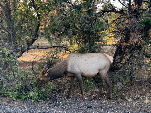 The ponderosa pines and Douglas-fir trees blanketed our surroundings as bright yellow Aspens illuminated the mountainsides showing off their fall outfits. My heart pumped with anticipation and excitement as we drove toward the national park that had eluded our eyes for many years: the Grand Canyon. When we arrived at the campgrounds, the host informed us that, unfortunately, all first come, first served sites had been claimed : ( Although we were crestfallen, the host smiled as they informed us that a reserved site had just opened up today! The camper's RV needed repairs and he would be gone for a couple of nights so we were more than welcome to camp there!