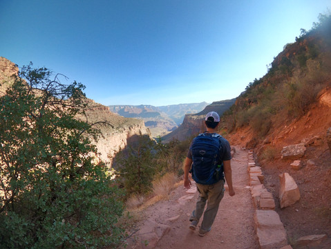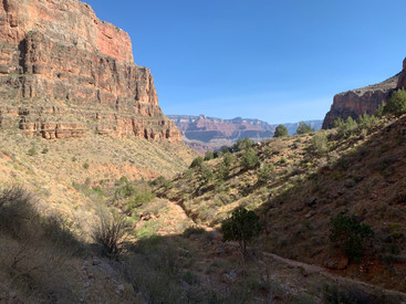 Sweat dripped down along my face as I drew my stare upwards against the towering canyon wall. The sun, which had been racing upward into the sky as we began our journey down into the deep ravine, shone brightly against my face, glinting against the colorful walls that surrounded us. Dust hung in the air, stirred up by the pack of mules that had just passed by carrying a group of tourists down to Phantom Ranch. My heart was pounding in my chest, my lungs fighting for every breath, and my legs on fire with lactic acid. But my eyes, taking in the view from below, darted from the steep uphill trail toward the surrounding lush greenery we had just left in Indian Garden. We had just hiked 4.5 miles down Bright Angel Trail to this oasis in the desert and were making our way back up to the trailhead.
